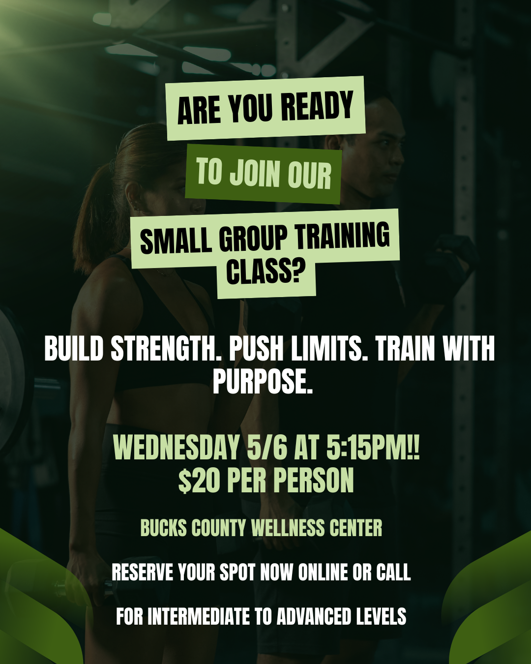 At Bucks County Wellness Center, our personal trainer, Delaney, will guide you in a small group training class designated to enhance your strength.